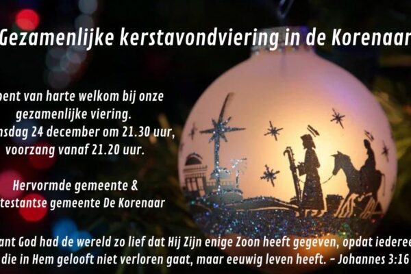 21.30 uur : Kerstnachtdienst. Gezamenlijke viering met de Hervormde Gemeente . in “de Korenaar” onder muzikale begeleiding van Promising Voices.
