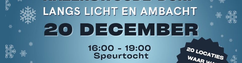 Actief Rijnwoude, het Dorpsoverleg en een aantal ondernemers organiseren op 20 december gezamenlijk een Winterwandeling door Hazerswoude-Dorp. Deelname is gratis.